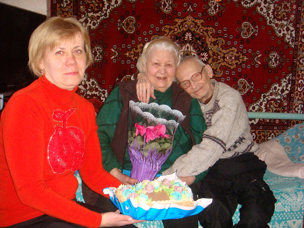 Микола Степанович та його дружина Тамара Петрівна Скопич по провулку Ламаному в місті Хорол. Мають сина, який проживає за межами області, хворіє та має групу інвалідності, а тому вони потребують сторонньої допомоги.Таку допомогу постійно надає соціальний робітник Некраха Світлана Богданівна, яка відчуває відповідальність за вчасно надані соціальні послуги, відносини добропорядні. От і в день сімейного свята власноручно приготувала святковий торт та з ранку завітала привітати сім’ю Скопич Миколу Степановича та Тамару Петрівну.