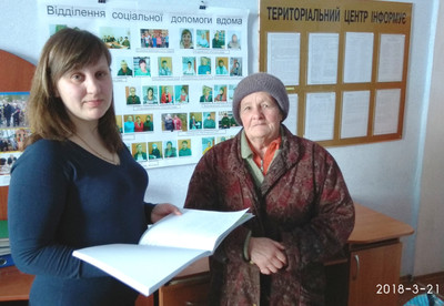 З аналогічною метою 30.03.2018 р. до відділення соціальної допомоги вдома територіального центру завітала підопічна відділення – Матвієць Ольга Павлівна, як подякувала керівництву територіального центру та висловила слова вдячності всьому колективу за постійну підтримку та допомогу у вирішенні нагальних життєвих проблем